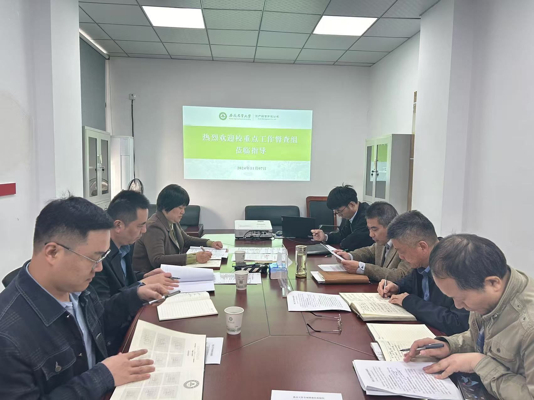 本网讯 11月7日,根据学校《关于开展2024年度重点工作督查的通知》要求,校督查组成员肖军、何小佳、周贤超一行对公司2024年度重点工作进行督查,会议由公司党支部书记、总经理姚兴贵主持,公司党支部副书记、副总经理徐传军及相关部门负责同志参加会议。