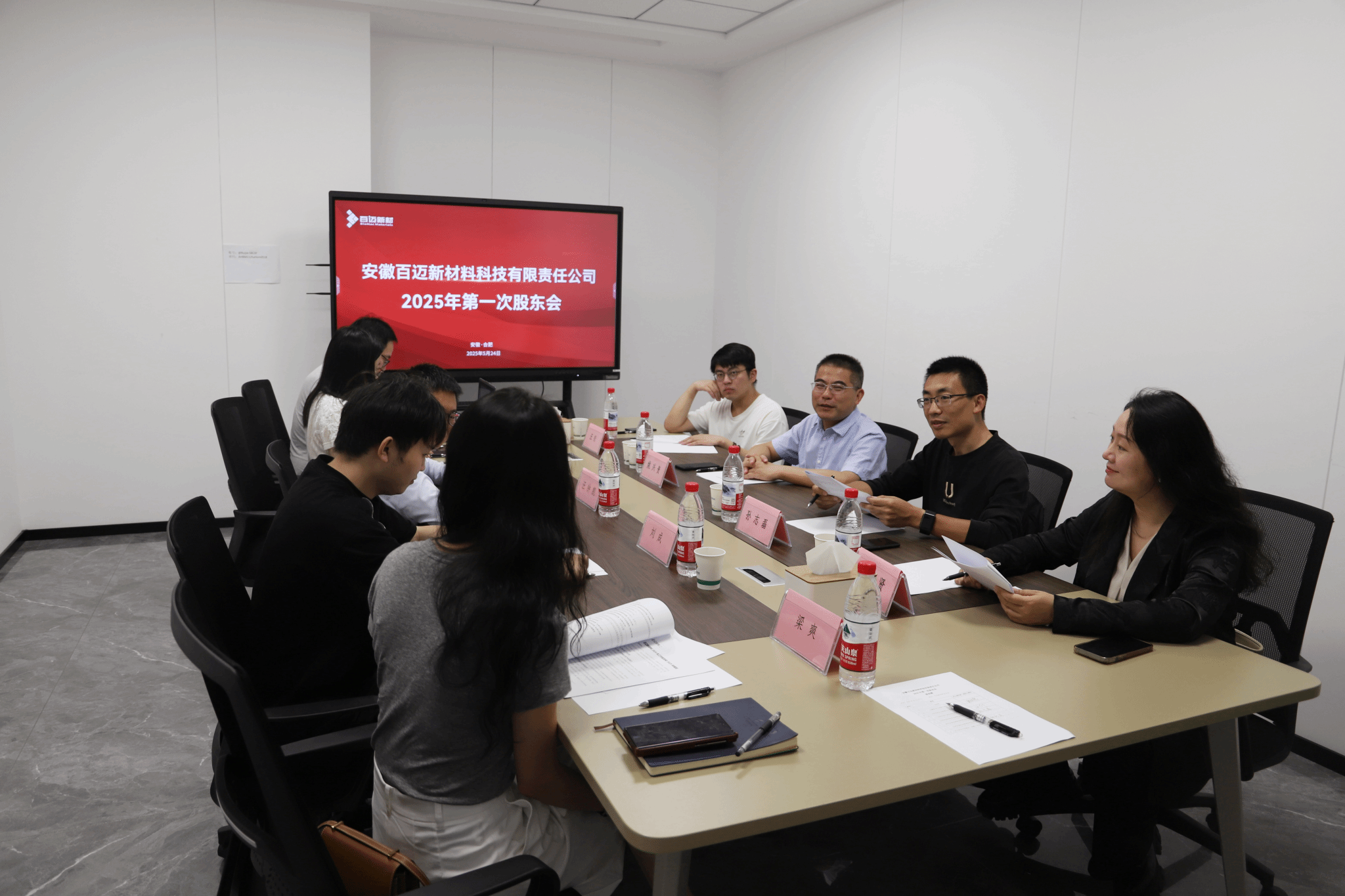 本网讯 5月24日下午,资产经营公司持股公司安徽百迈新材料科技有限责任公司(以下简称“百迈公司”)召开2025年度股东会议。公司总经理姚兴贵应邀出席,百迈公司创始人汪钟凯教授、全体股东代表及百迈公司管理层参加会议,会议由百迈公司总经理徐国栋主持。