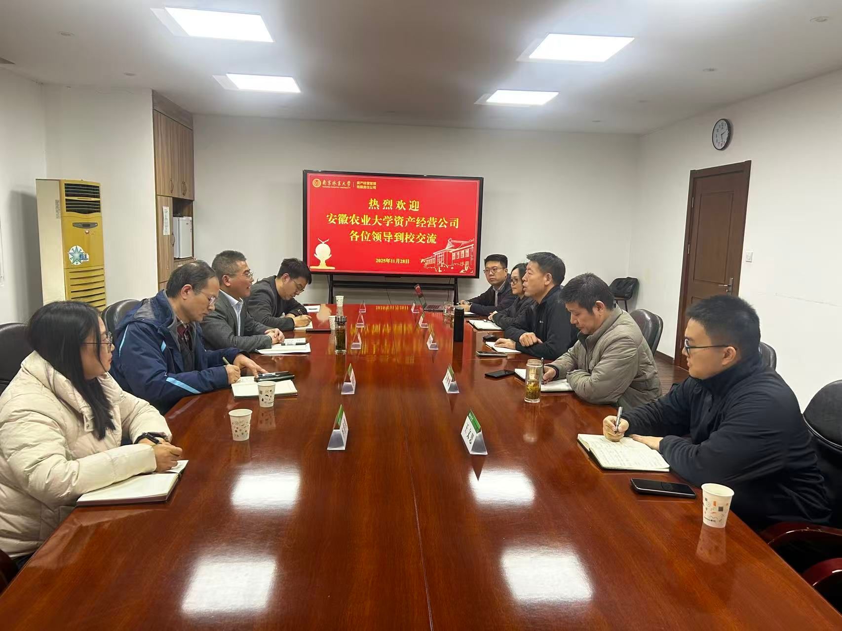 座谈会上,南林资产公司总经理曹海峰首先系统介绍了学校的办学底蕴与公司发展历程,重点分享了在国有资产盘活运营、下属企业等核心业务方面的实践经验。姚兴贵对南林资产公司的热情接待表示感谢,并介绍了我司的发展现状与面临的挑战,表达了希望通过此次交流借鉴经验、共探发展路径的诚挚愿望。