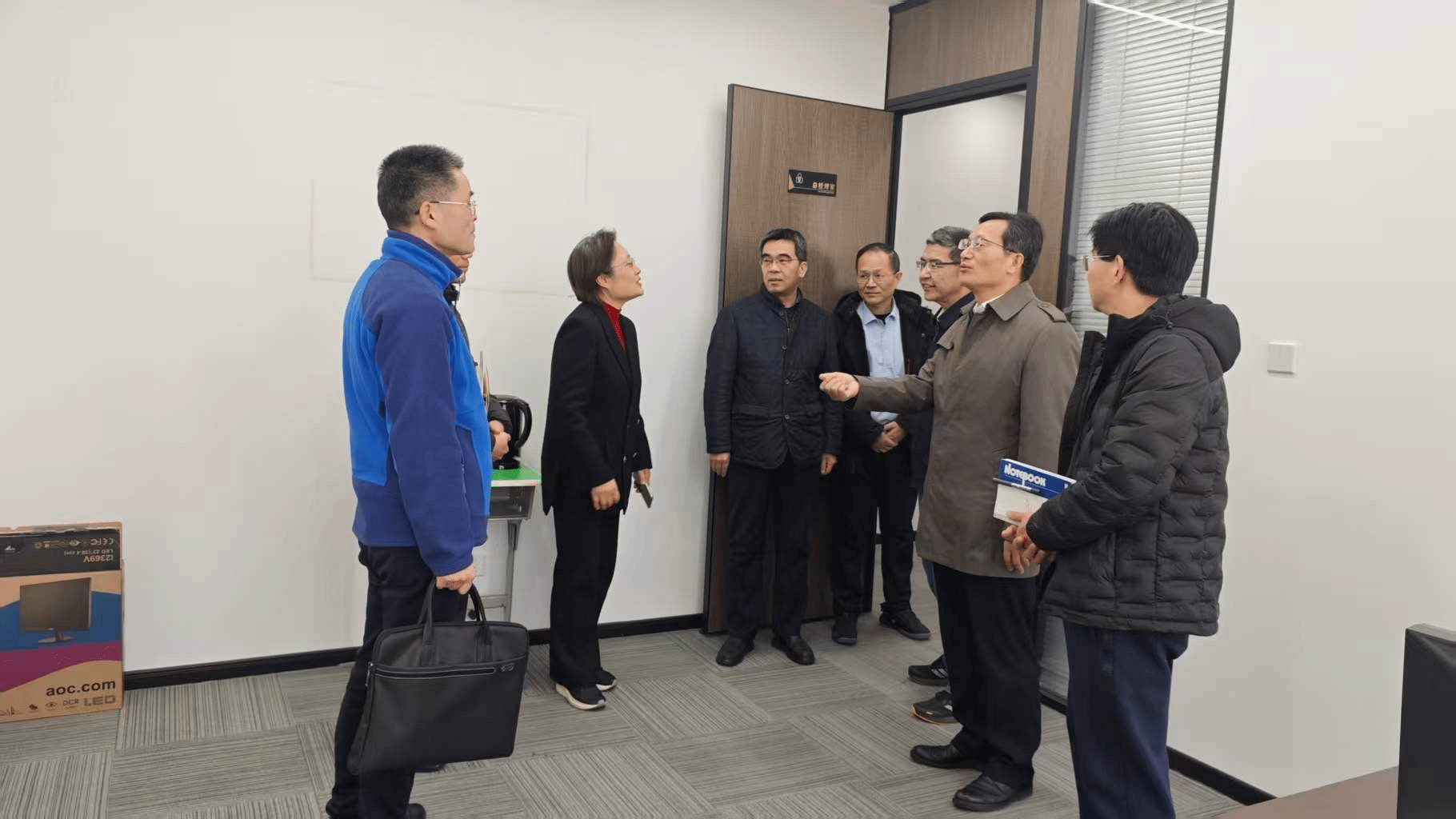 本网讯 近日,我司顺利完成办公场所搬迁。2月11日下午,校领导张庆亮、董雨、李红、蔡德军亲临公司新址看望慰问全体员工,实地查看办公条件,了解搬迁情况并指导工作,为公司发展加油鼓劲。