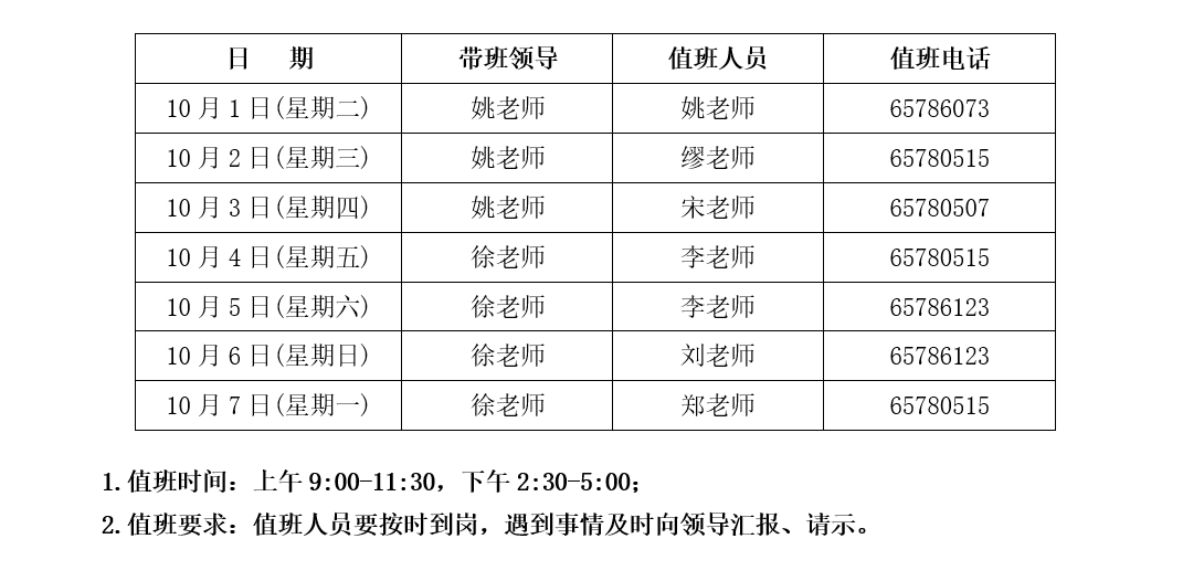 资产经营有限公司2024年国庆节值班安排表