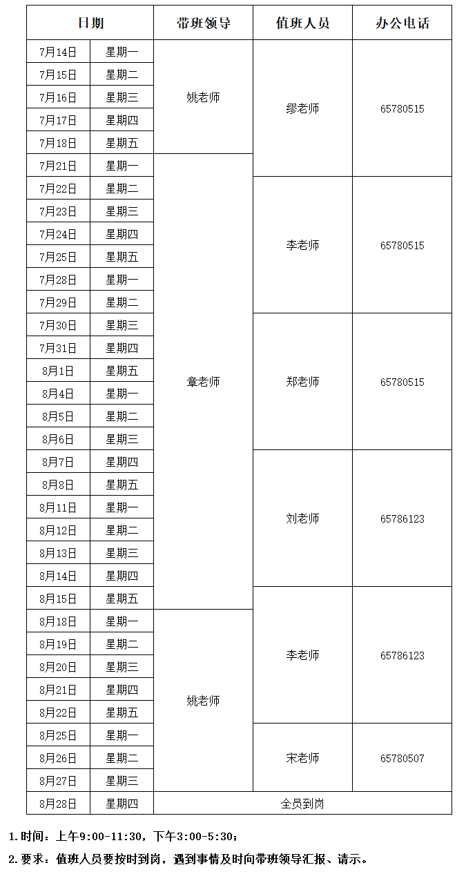 资产经营公司2025年暑假值班安排表