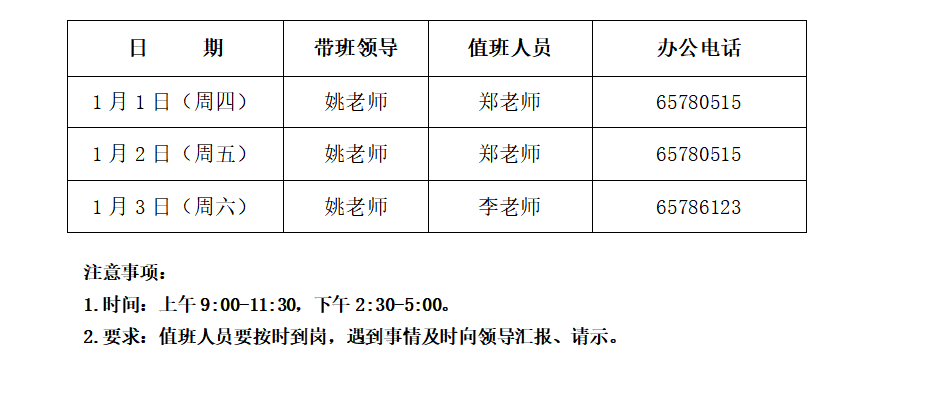 资产经营有限公司2026年元旦值班安排表