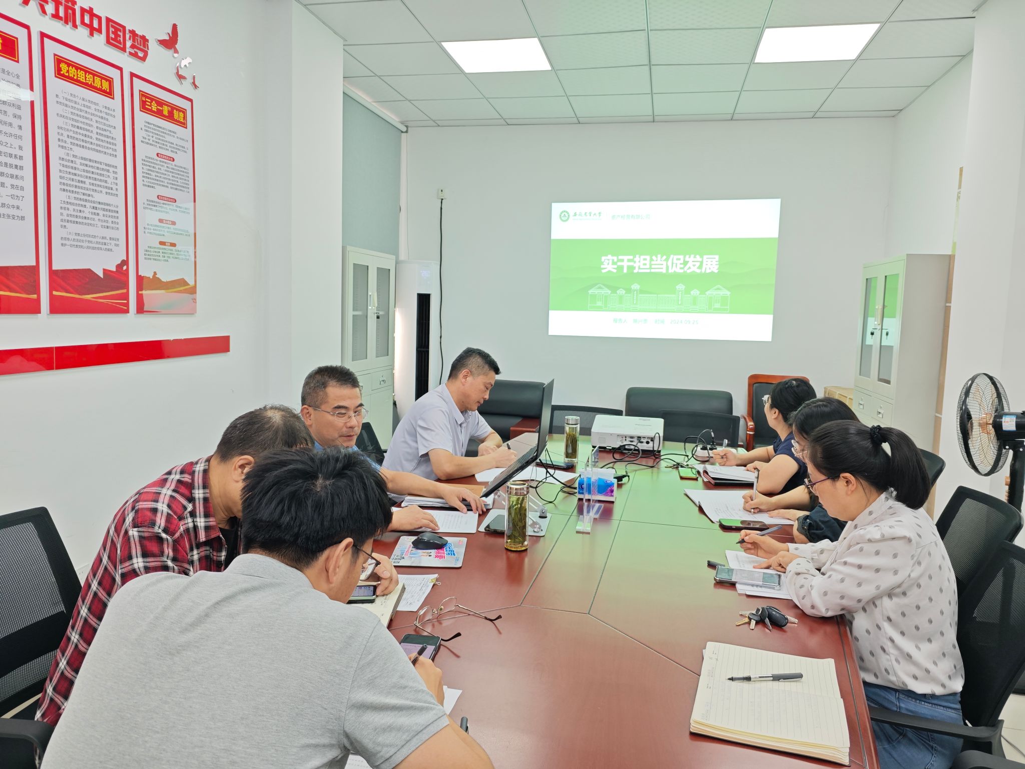 本网讯 为深入学习贯彻党的二十届三中全会精神,9月25日下午,公司党支部书记姚兴贵为支部全体党员讲了一堂题以《实干担当促发展》的党课,支部全体党员参加学习讨论。