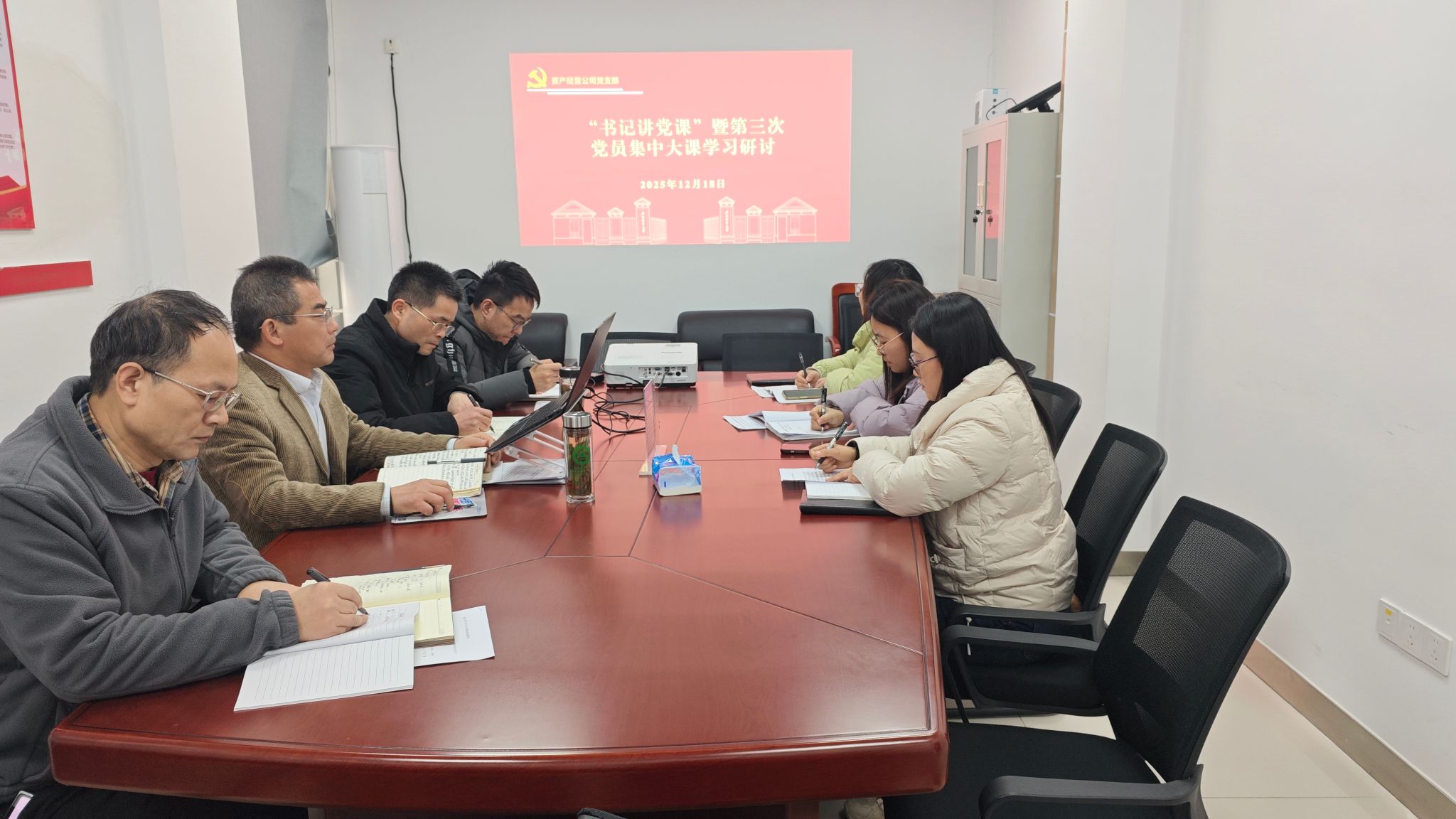 本网讯 12月18日,资产经营公司党支部开展“书记讲党课”暨第三次集中大课学习研讨会。支部全体党员及入党积极分子参加学习研讨。